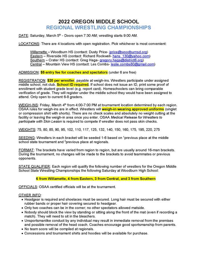 Oregon Middle School State Wrestling Championship