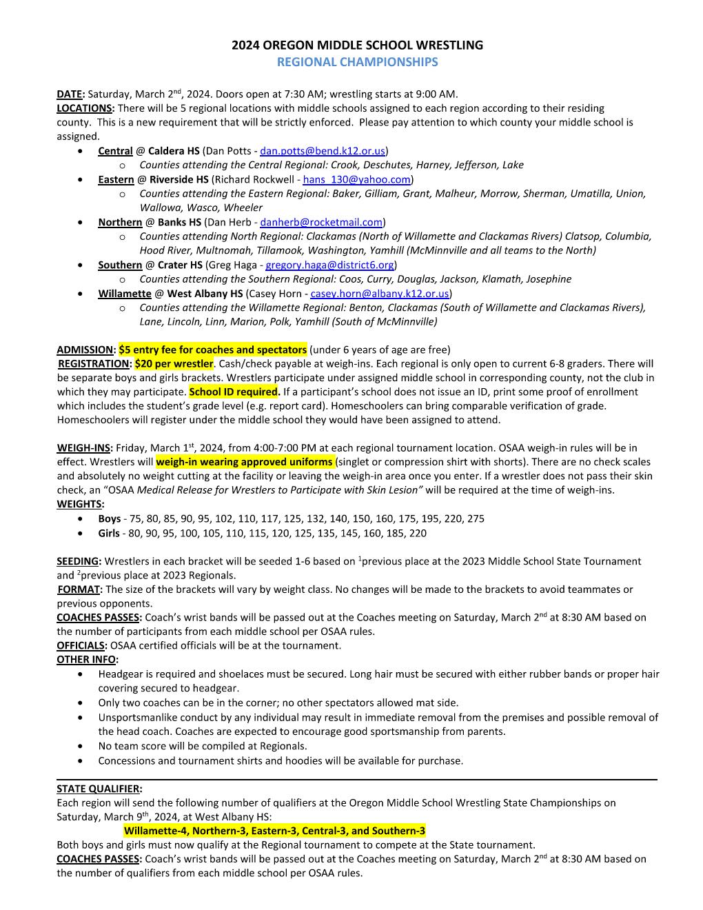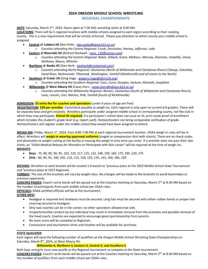 2024 OREGON MIDDLE SCHOOL WRESTLING – REGIONAL FLYER