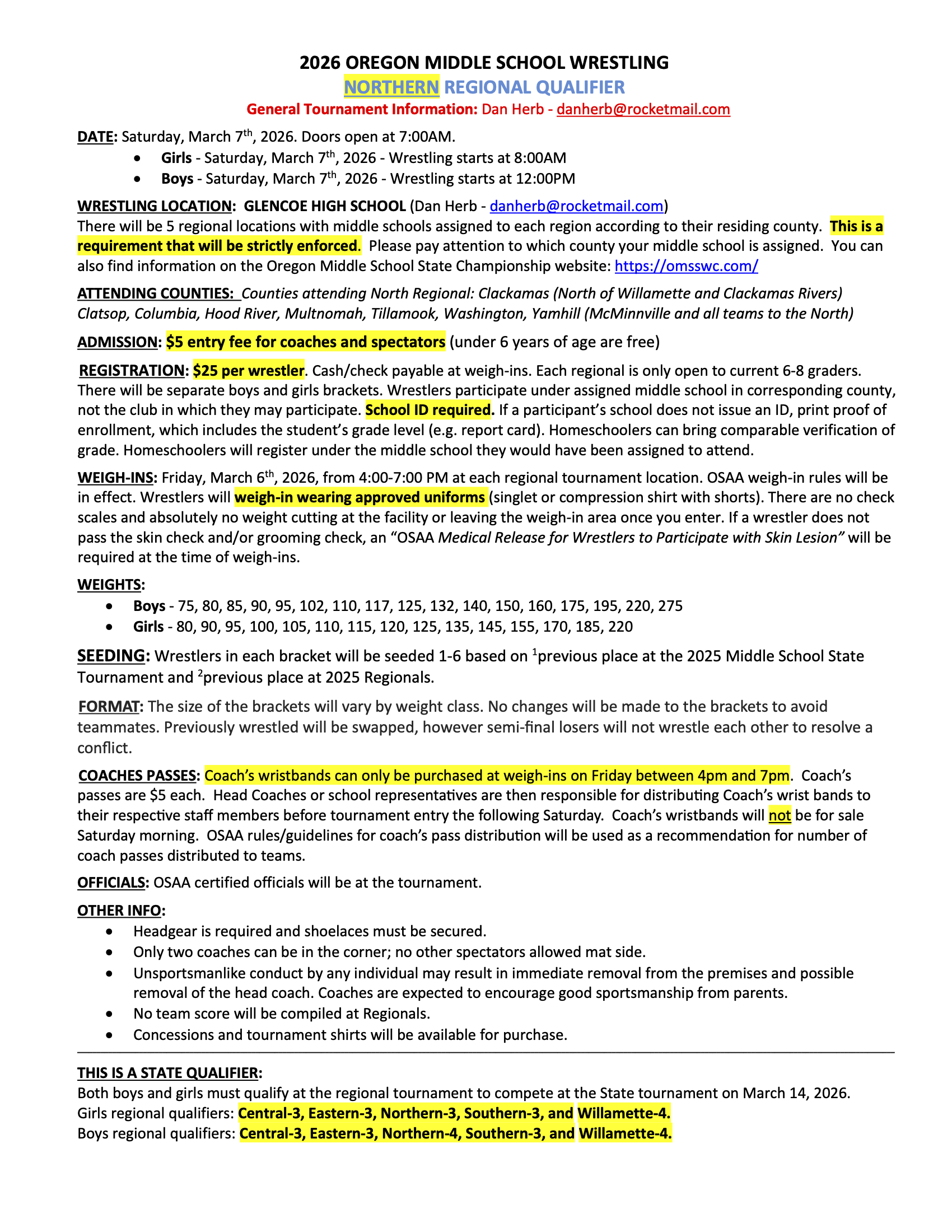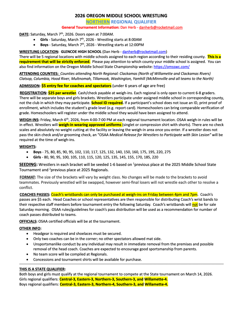 - Yamhill (McMinnville and all teams to the north)